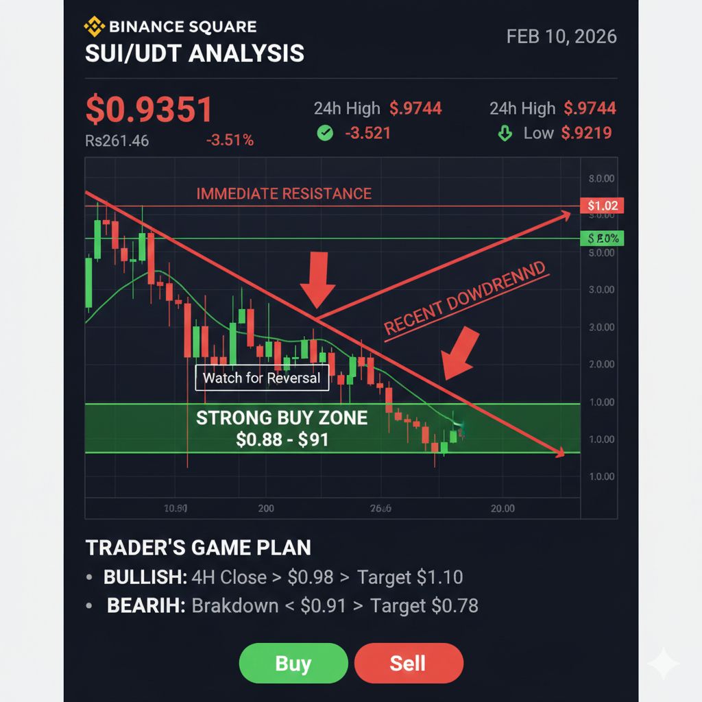 $SUI As long as price stays below $1.00, rallies may face selling pressure. A clean reclaim above resistance could shift momentum bullish, while failure to hold $0.92 risks another leg down.