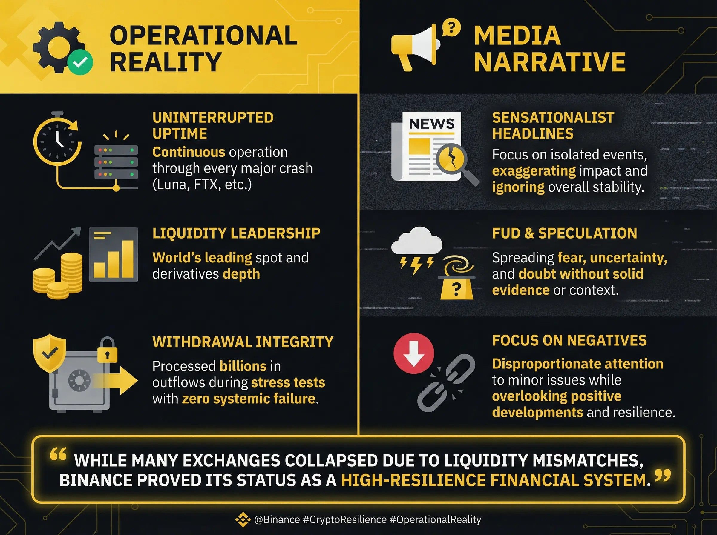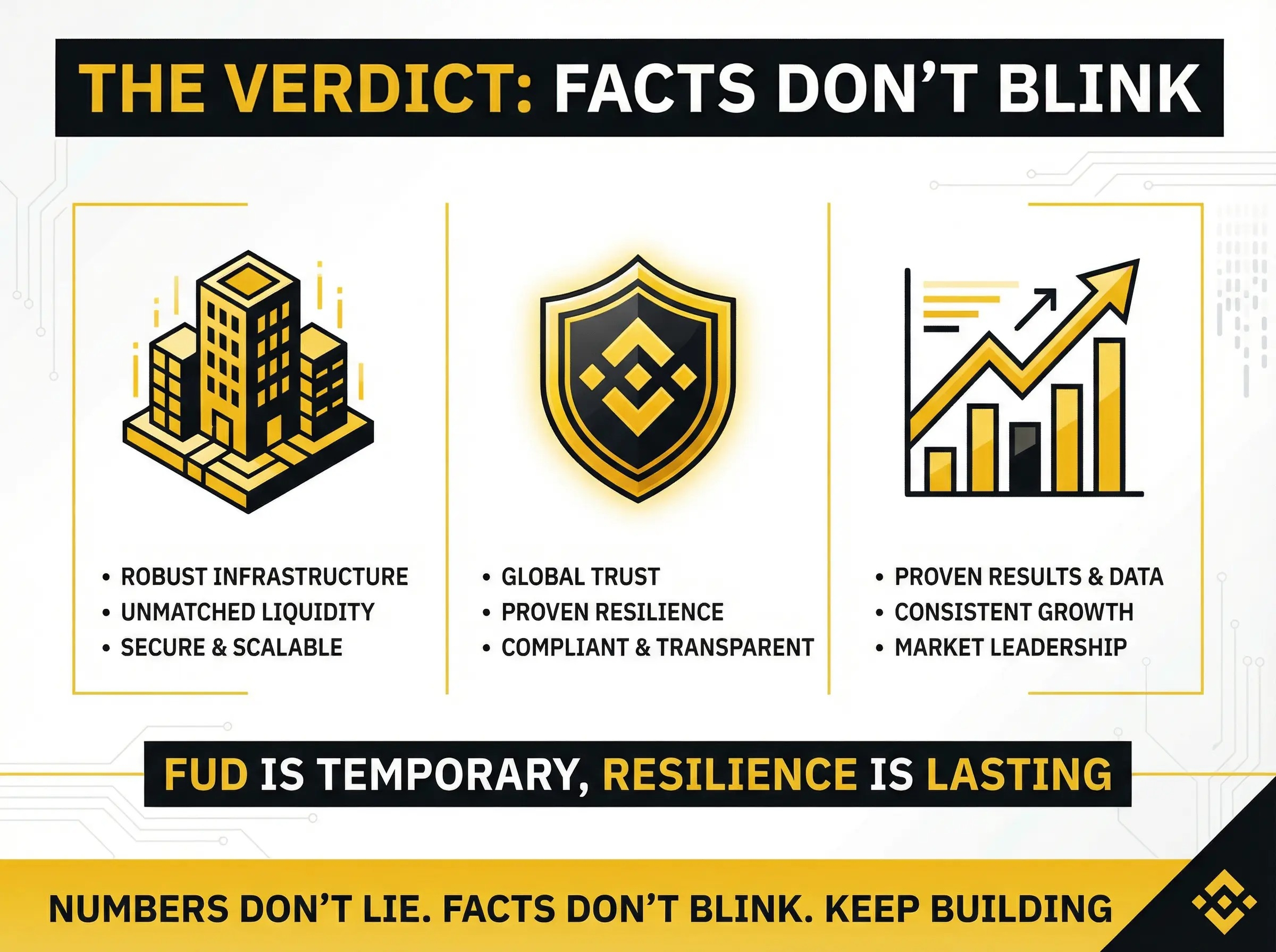 FUD kann die Marktsentiment für einen Tag oder eine Woche stören, aber Infrastruktur und Resilienz bestimmen, wer ein Jahrzehnt lang bestehen bleibt. Binance bleibt die zentrale Börse der globalen Kryptoindustrie, nicht wegen der Worte, sondern wegen dessen, was aufgebaut, getestet und bewiesen wurde.