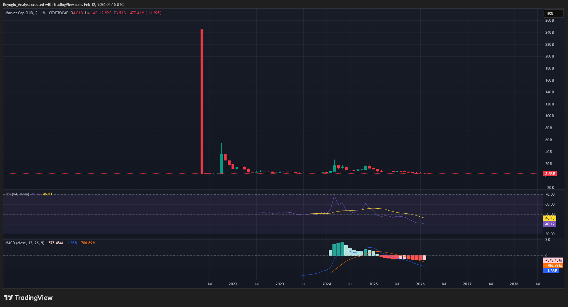Jetzt ist die Marktkapitalisierung von Shib auf 3,5 Milliarden Dollar gefallen, während sie 2021 260 Milliarden Dollar erreicht hat. Derzeit liegt sie 98,5 % unter der Marktkapitalisierung von 2021.
