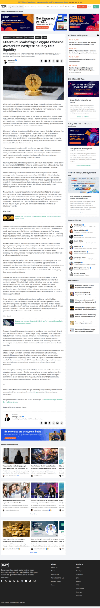 Der Beitrag Ethereum führt einen fragilen Krypto-Rücksprung an, während die Märkte durch die dünne Liquidität des Urlaubs navigieren, erschien zuerst auf Anndy Lian von Anndy Lian.