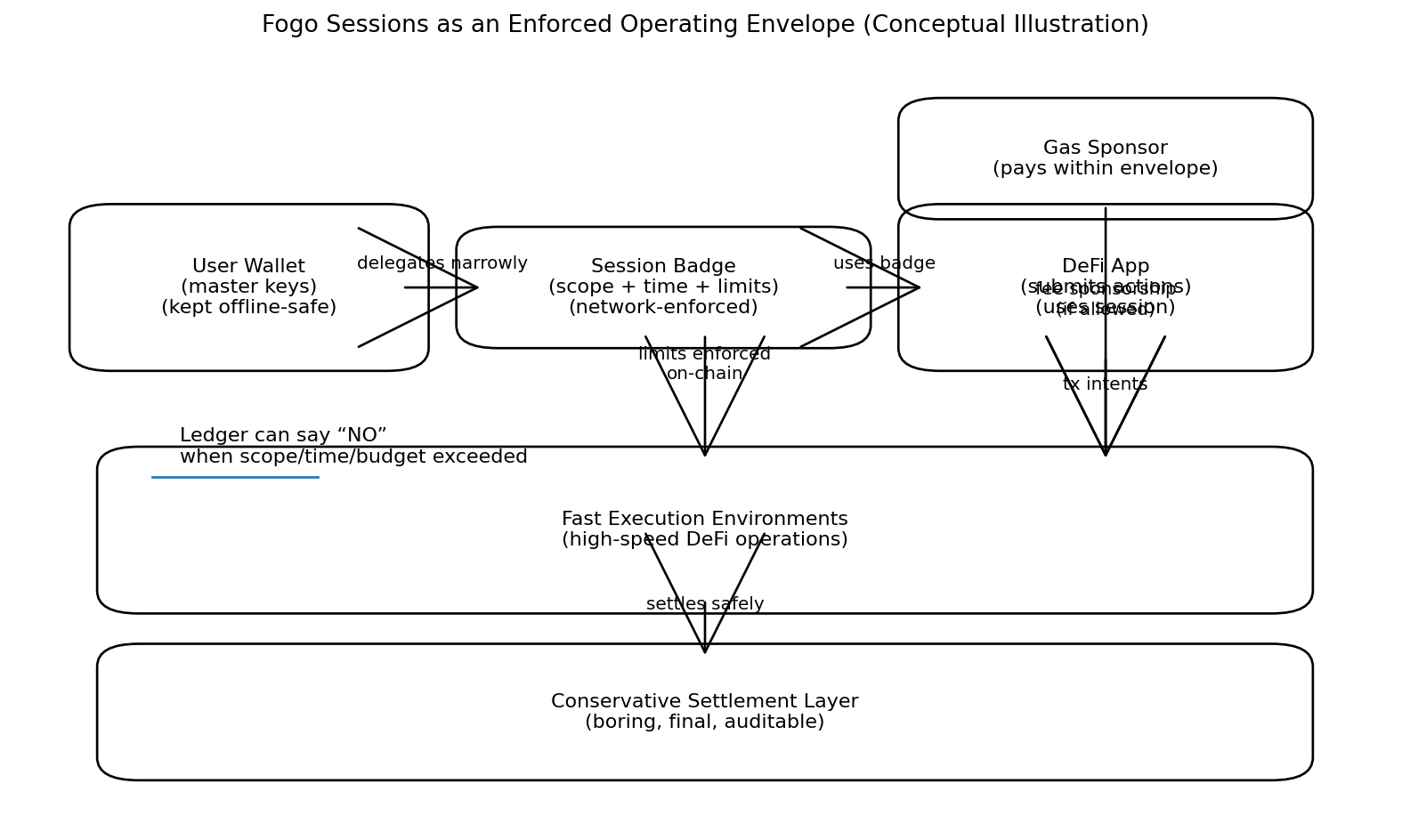 Fogo Sessions are enforced, time-bound, scope-bound delegation. Not a vibe. Not a “trust me.” A real, network-enforced operating envelope. Like a visitor badge that lets you into the lobby and the conference room, but not the server closet. Like a pre-approved corridor where you can do what you came to do, with limits that don’t rely on the app behaving nicely. Limits that don’t disappear because a front-end got compromised or a plugin got clever.