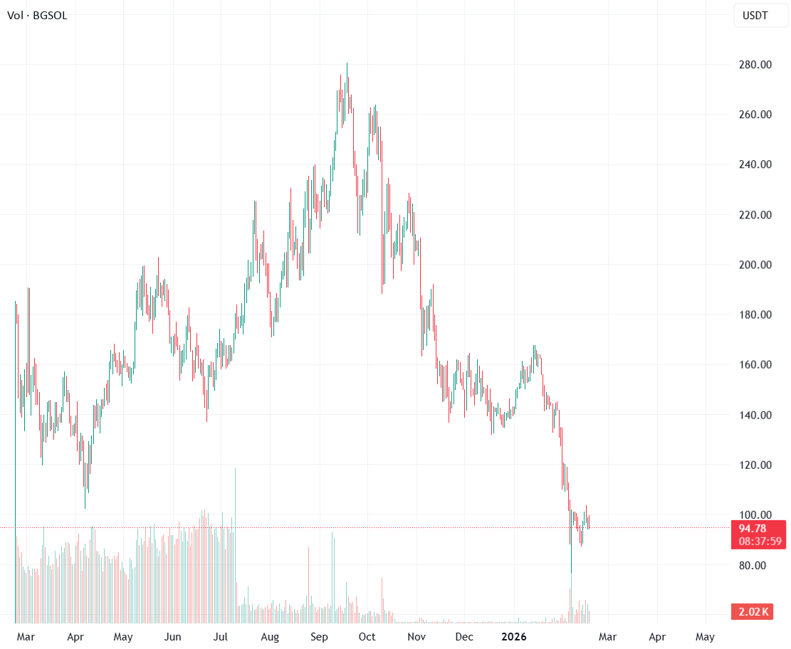 Futures: Keine — es existiert kein Futures-Markt für BGSOL. Jede Preisbewegung wird von tatsächlichen Käufern und Verkäufern getrieben, nicht von gehebelten Spekulanten. Das macht technische Signale hier zuverlässiger als auf jedem von Futures dominierten Chart, wo Geistermärkte die Realität verzerren.