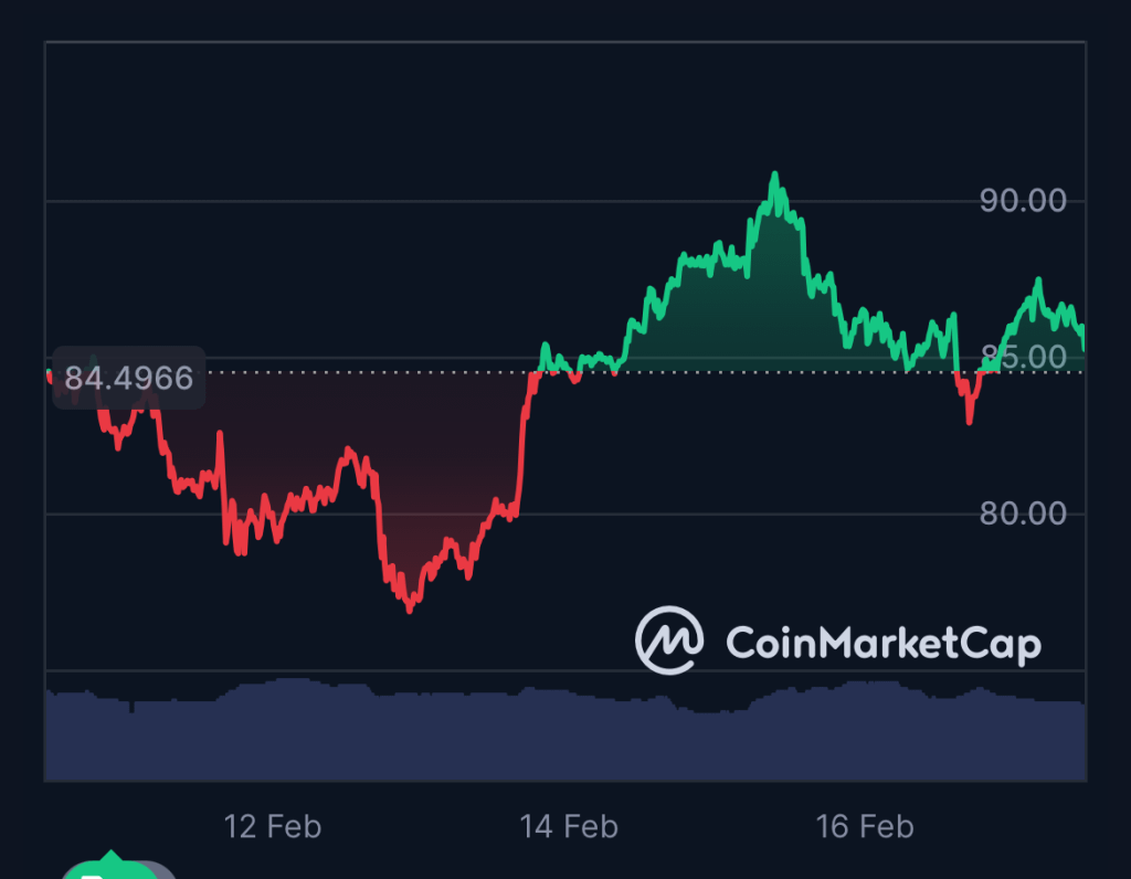 Trotz laufender Entwicklungen und zunehmender Blockchain-Akzeptanz hatte Solana in der Preisbewegung eine schwierige Woche. Vom 12. Februar bis 18. Februar ist SOL nur bescheiden von 81,18 $ auf 83,21 $ gestiegen und hat es versäumt, überzeugend über den wichtigen Widerstand bei 85 $ zu brechen.