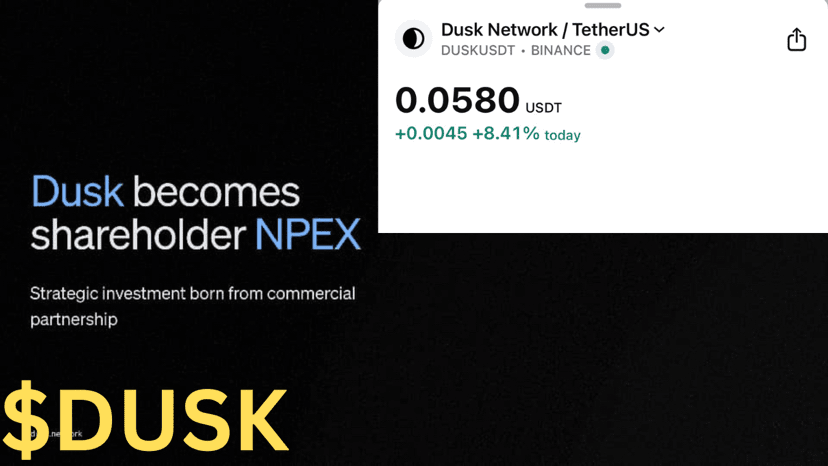 $DUSK Dieser Schritt ist für beide Seiten etwas Großes. Dusk ist ein Fintech-Scalup mit Sitz in Amsterdam und nachdem sie bereits eine Zeit lang mit NPEX zusammengearbeitet hatten, entschieden sie sich endlich, dies weiter voranzutreiben. Während ihrer Zusammenarbeitszeit testeten sie bereits Pilotprojekte, die darauf abzielten, neue und innovative Finanzprodukte zu schaffen. Daher kam diese Beteiligung nicht aus dem Nichts, sondern war bereits langsam aufgebaut worden. Für Investoren bringt dieser Schritt mehr Vertrauen und mehr Möglichkeiten für die Zukunft.