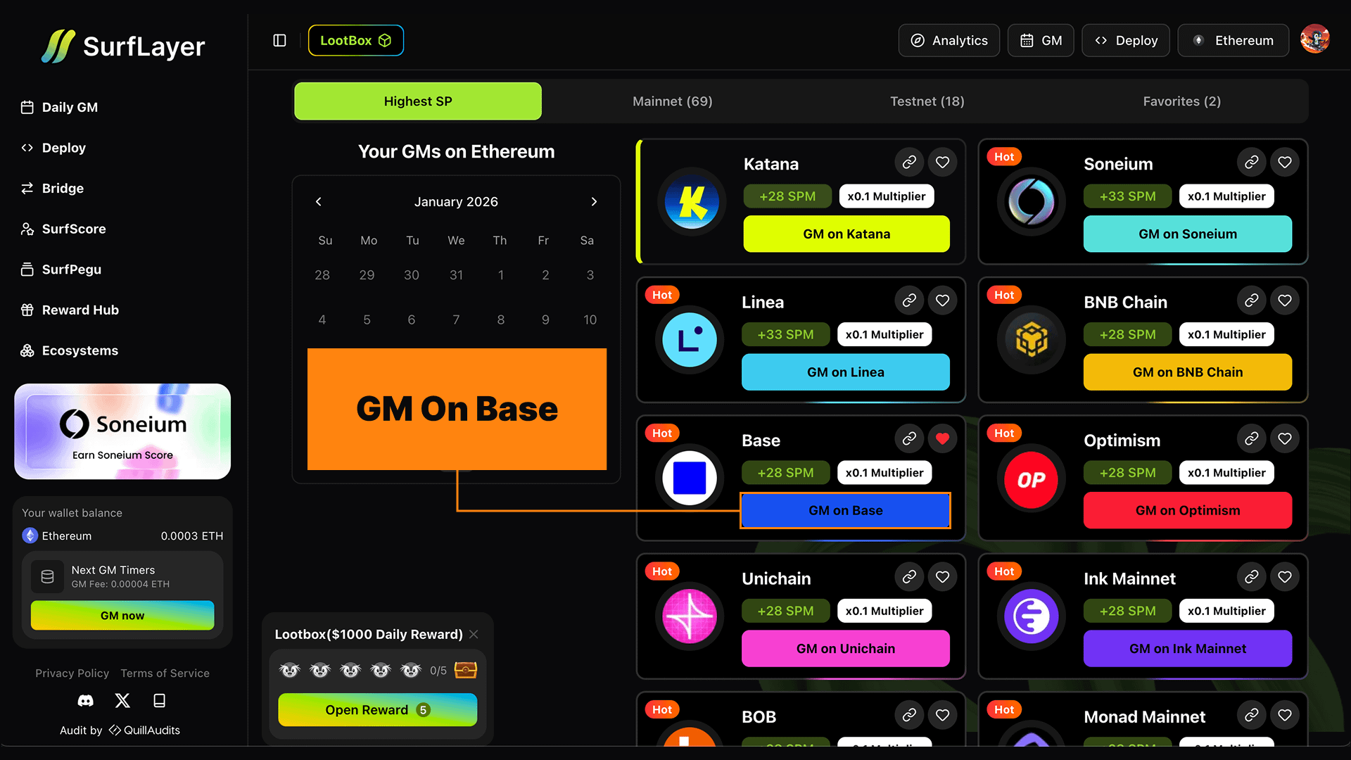 Dies macht SurfLayer ideal für sowohl Neulinge als auch erfahrene Benutzer, die langfristige, konsistente Aktivitäten auf Base anstreben.