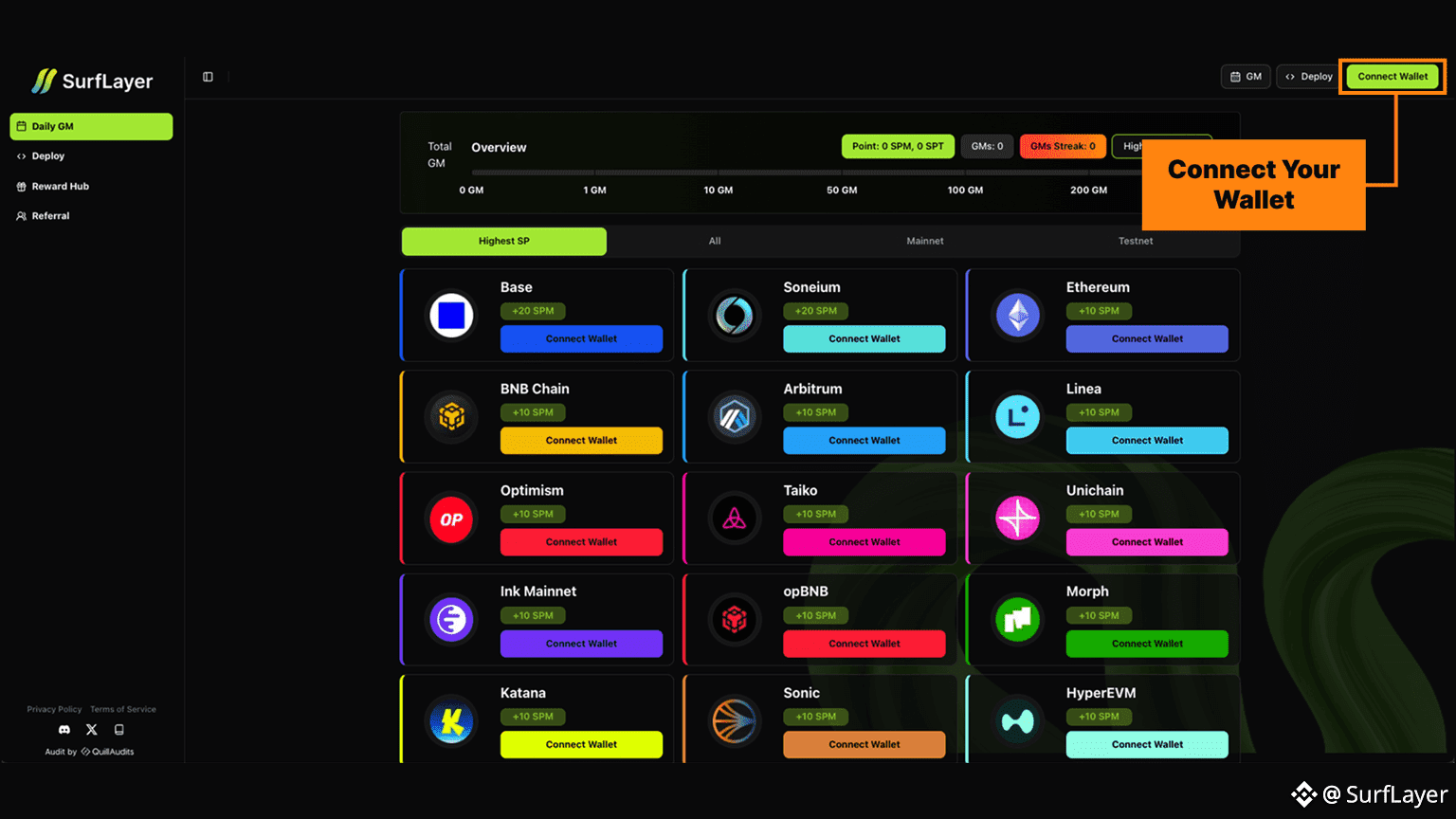 SurfLayer wurde entwickelt, um diese Reise zu vereinfachen. Indem alltägliche On-Chain-Aktionen in strukturierte und nachverfolgbare Interaktionen umgewandelt werden, hilft SurfLayer den Benutzern, schrittweise eine verifizierbare On-Chain-Identität über mehrere Netzwerke hinweg - einschließlich Base - aufzubauen.