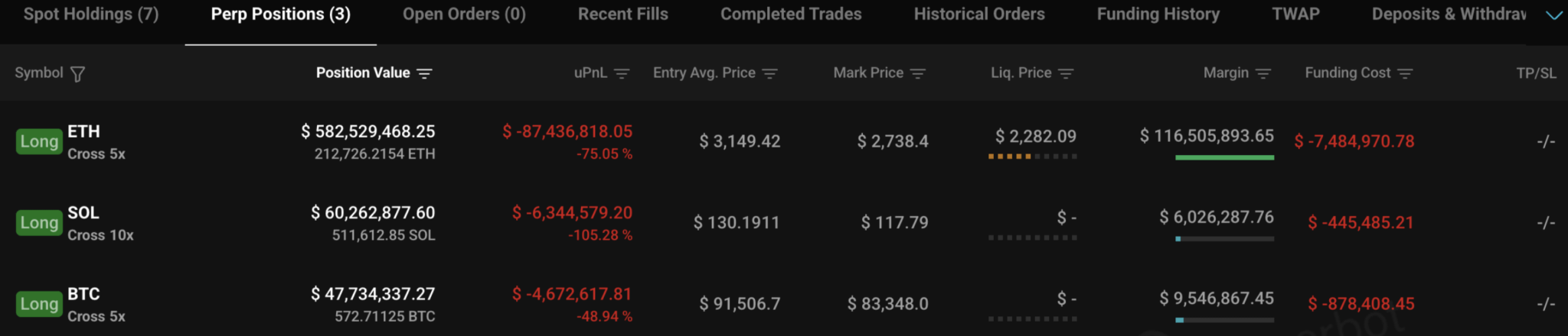 Interessanterweise haben alle drei Vermögenswerte fast sofort einen Teil ihrer Verluste wieder aufgeholt, und zwar zum nahezu genau gleichen Preis, zu dem der 10/10 Trader gerade liquidiert wurde. Der Trader erzielte während des Liquidationsereignisses im Oktober über 100 Millionen Dollar aus Trumps Zollankündigungen und hatte einen Liquidationspreis von 2.282 Dollar.