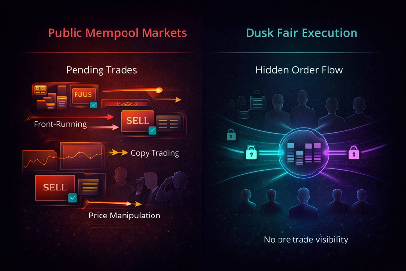 In einer normalen öffentlichen Blockchain verbreiten sich die Marktinformationen überall. Wenn Trades in einem offenen Mempool sind, können Einzelpersonen sie beobachten, replizieren, überholen oder den Preis in ihre Richtung drücken. Ihr Plan wird selbst dann exponiert, wenn Sie nichts Schlechtes tun. Das macht ernsthaftes Trading unerschwinglich. Es treibt auch Institutionen zurück zu den Privatsphäre-Systemen.