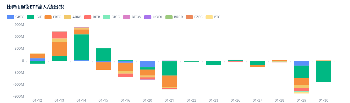 ● Die Daten zeigen, dass der Bitcoin-ETF-Sektor ein negatives Wachstum aufweist. Auf monatlicher Basis hat der Spot-Bitcoin-ETF dreimal Kapitalabflüsse verzeichnet. Von November 2025 bis Januar 2026 belief sich der Kapitalabfluss auf fast 6,2 Milliarden US-Dollar.