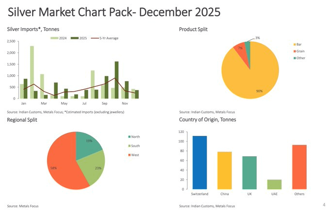 Indien hat im Jahr 2025 eine riesige Menge Silber$XAG importiert, insbesondere gegen Ende des Jahres.