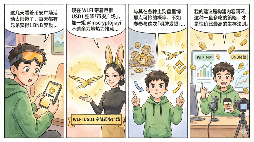 Mein Vorschlag ist, einen geschlossenen Inhaltskreis aufzubauen, zuerst eine tiefgehende Analyse von WLFI/USD1 zu schreiben, um BNB-Belohnungen zu erhalten, und dann diese Logik zu visualisieren und in den Livestream zu bringen, um den USD1-Pool von WLFI @worldlibertyfi zu gewinnen.