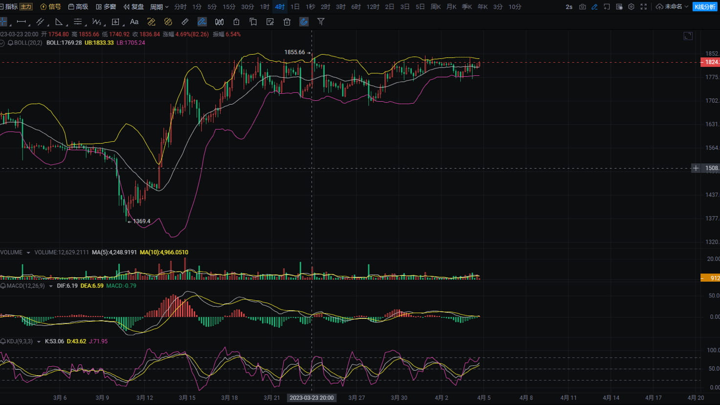 Ethereum fiel gestern Abend bis auf 1762 und schaffte es nicht, die untere Unterstützung effektiv zu durchbrechen, stieg auf ein Maximum von 1839 und begann derzeit um 1820 zu sinken Aus Sicht der vier kleinen Niveaus erholte sich der Markt schnell, nachdem er die Unterstützung des gleitenden Durchschnitts MA10 erreicht hatte, was darauf hindeutet, dass die Stärke der Bullen immer noch vorhanden ist. Gleichzeitig sind die Short-Positionen auf dem 4-Stunden-Niveau BOLL bewegt sich ebenfalls im mittleren Bereich des Währungspreises. Heute ist unsere Mittagsoperationsidee hauptsächlich niedrig und lang.