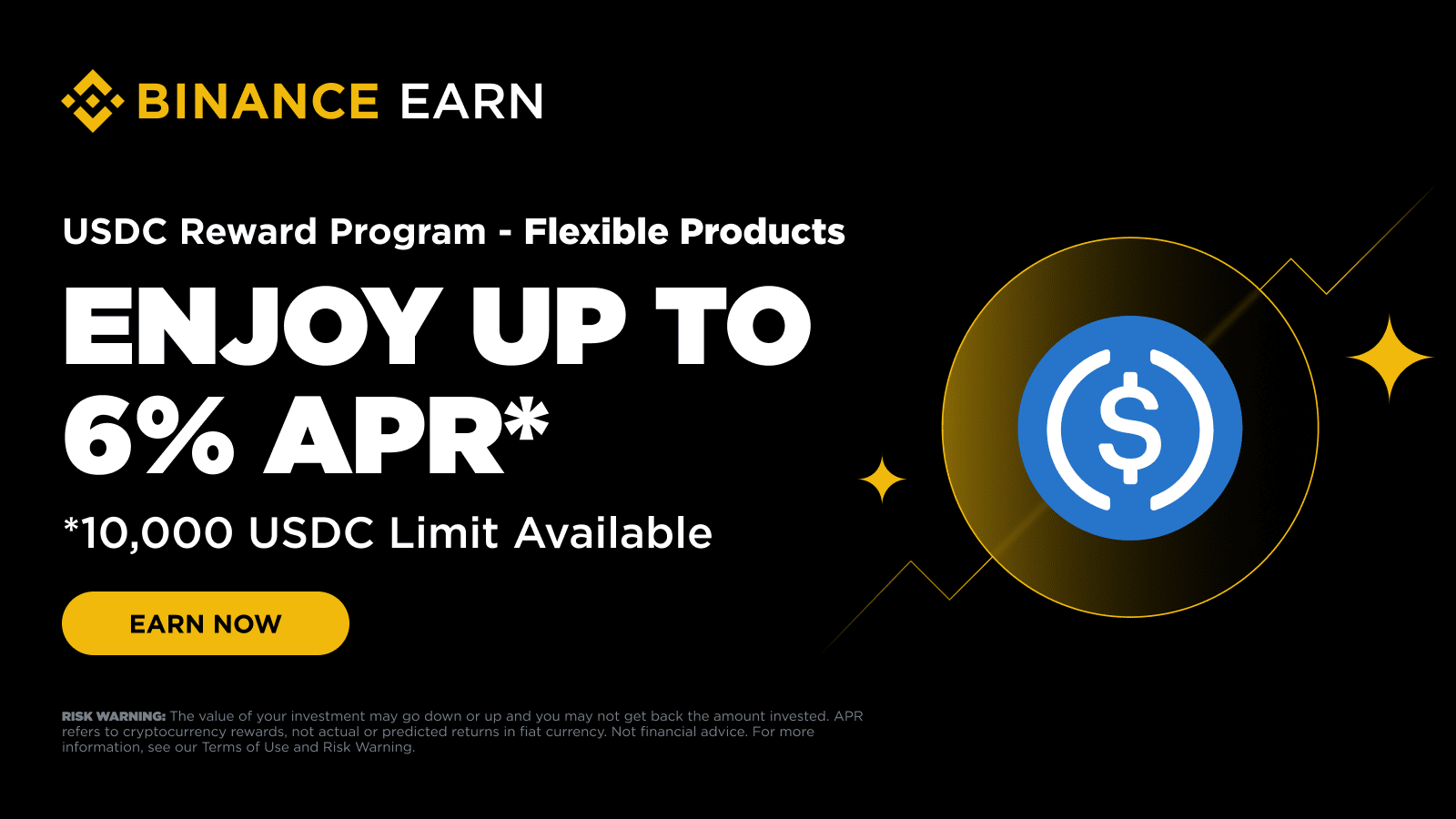 im Rahmen des USDC-Belohnungsprogramms startet Binance Earn eine Aktion für flexible Produkte mit USDC. Während des Aktionszeitraums können Nutzer, die in flexiblen USDC-Produkten von Simple Earn anlegen, einen APR von bis zu 6 % erhalten, wobei sie neben den Echtzeit-APR-Belohnungen zusätzlich von einem exklusiven gestaffelten Bonus-APR profitieren.