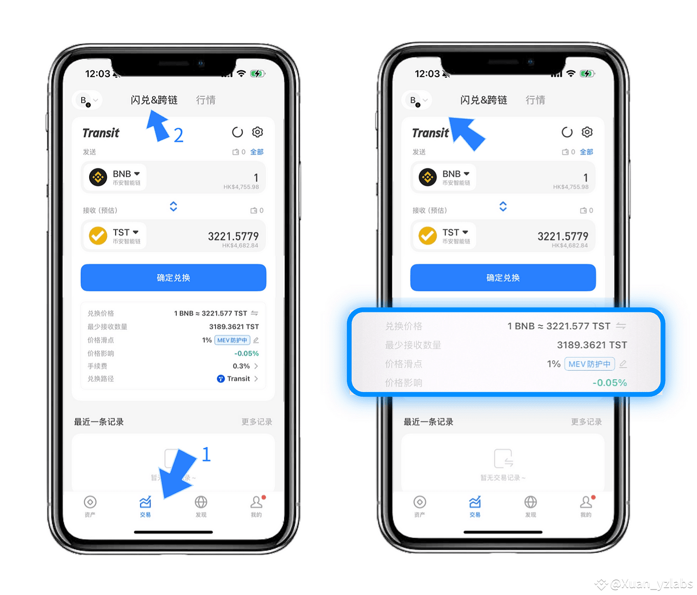 通过 Transit Swap 将 BNB 兑换为 $TST