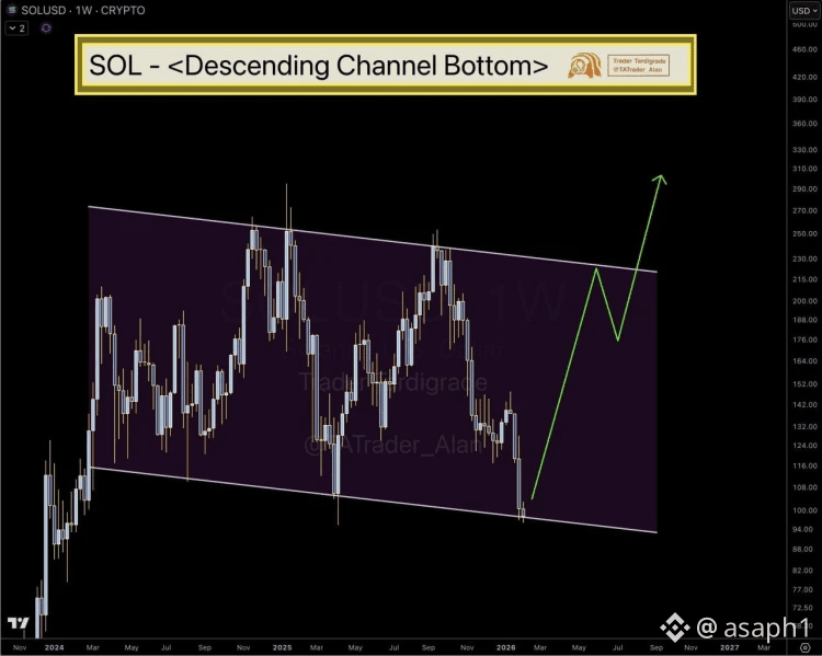 Lo mejor viene de la mano de los analistas que no se dejan llevar por el pánico. Ali Charts soltó una bomba: el indicador TD Sequential, que clavó el máximo de Solana el 9 de enero, acaba de marcar una señal de compra en el gráfico diario. Además, el legendario Trader Tardigrade dice que SOL está tocando el piso de un canal descendente semanal. Históricamente, cada vez que Solana llega a ese "piso", se dispara. ¡Estamos hablando de niveles que antes han impulsado rebotes masivos! 🚀💎