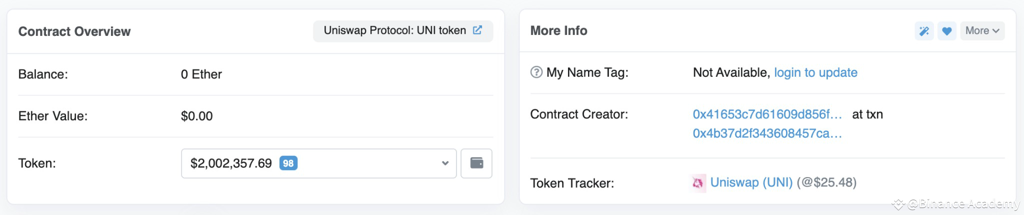 2.即可看到有关Uniswap(UNI)代币合约的合约余额和其他通用信息的详情。