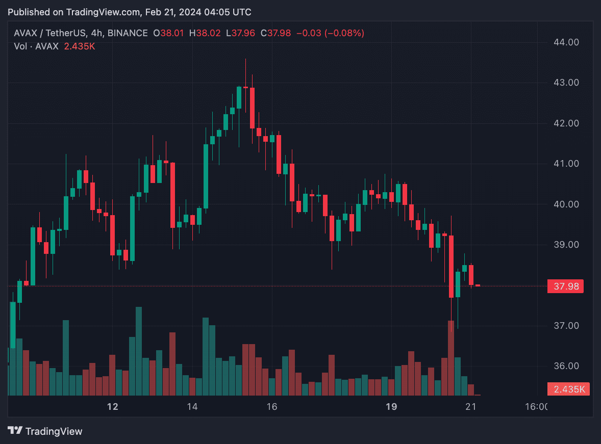 AVAX đã giảm hơn 4% trong tuần qua, trong khi hầu hết các loại tiền điện tử đều tăng giá. Vào thời điểm viết bài, AVAX đổi chủ ở mức 37,9 USD, thấp hơn khoảng 23% so với mức cao nhất trong tháng 12.