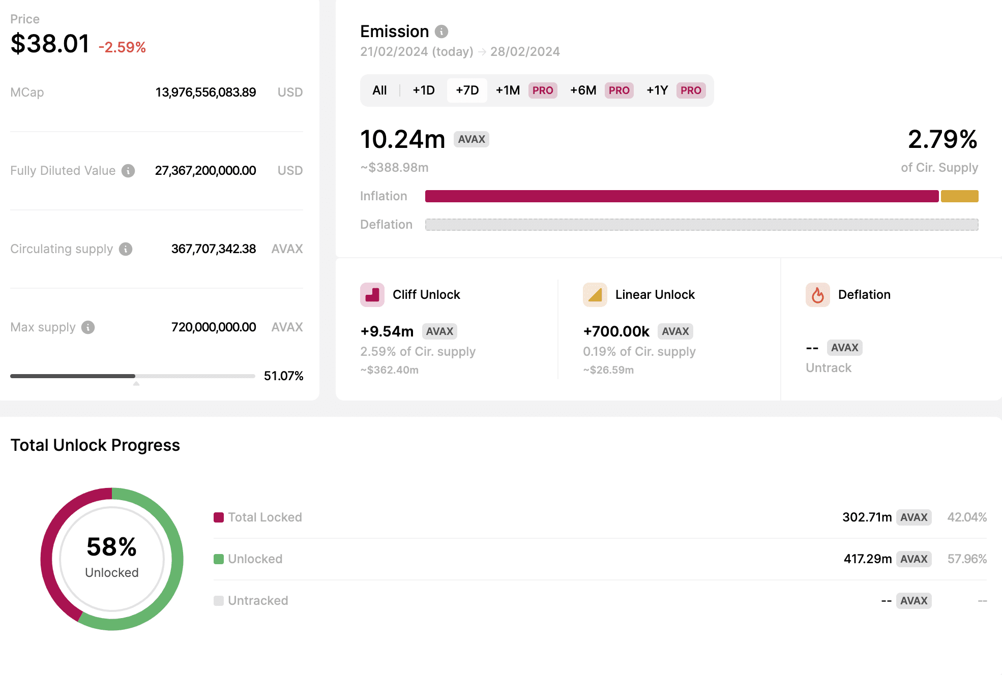 Dữ liệu onchain cho thấy khoảng 58% tổng số token của AVAX đã được mở khóa.