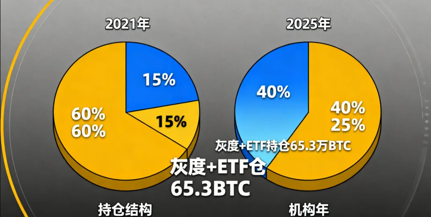 Variable one: Institutional restructuring of market ecology: In the previous three bull markets, retail investors accounted for over 60%, exacerbating volatility through chasing and killing. Currently, institutions account for over 40%, mainly with long-term positions (the average holding period of ETF positions is 14 months), greatly enhancing capital stability. Senior trader Bob Loukas points out, 'The change in participant structure has reduced the cycle's elasticity, and the bear market may delay until Q2 2026, with the pullback magnitude possibly narrowing to 50%-60%, rather than the historical 80%'