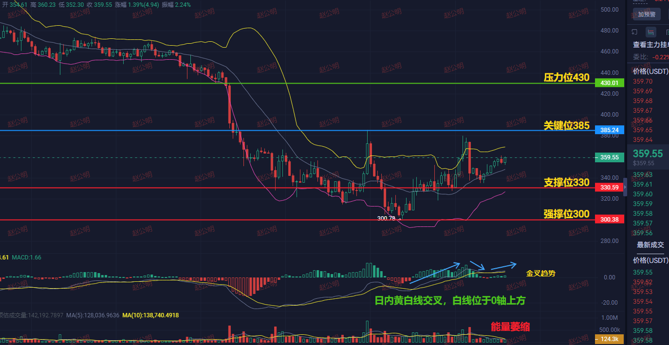 Advice for those holding positions: If you are already profitable on the ride, you should start to reduce your position in batches around 380 and pocket some profits. If you haven't entered yet, definitely don't chase after the price above 360!