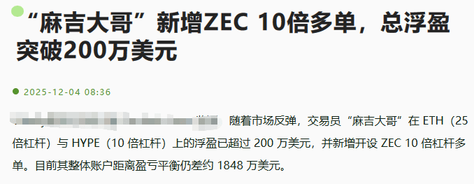 The action of "Big Brother Ma Ji" is very interesting: he is making money on ETH and HYPE while simultaneously diving into ZEC to go long. What does this indicate? It indicates that the big shots believe there is still room for a rebound in ZEC! But you need to be cautious: when everyone knows that the big shots have entered, it often signals a short-term peak. His unrealized profits need someone to "take over" in order to truly cash out, and that person might be you?