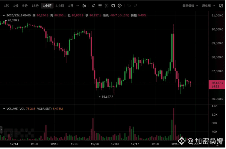 BTC 刚冲上 9 万美元,还没等大家喊 “冲 10 万”,空头直接一盆冷水浇下来,瞬间砸回 8.5 万!截稿前勉强回抽到 86137 美元,但懂的都懂 —— 这波反弹大概率是 “回光返照”,后面该跌还得跌