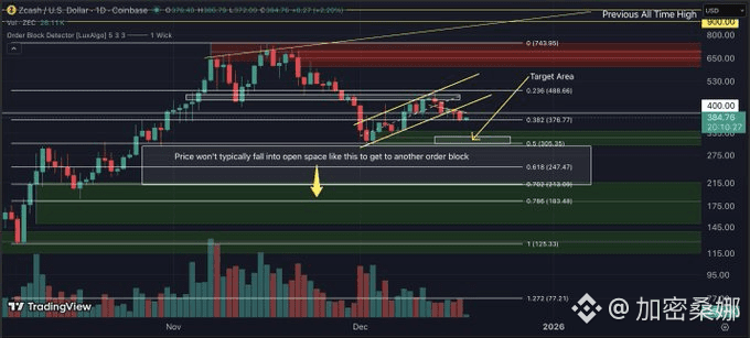 ZEC:碰到宏观 0.5 斐波那契位置有反应,想直接跌破 200 多的低点有点难。大概率要么在这附近搞个 “双底”,要么直接冲过去,波动小的时候,双底比慢慢跌靠谱多了~