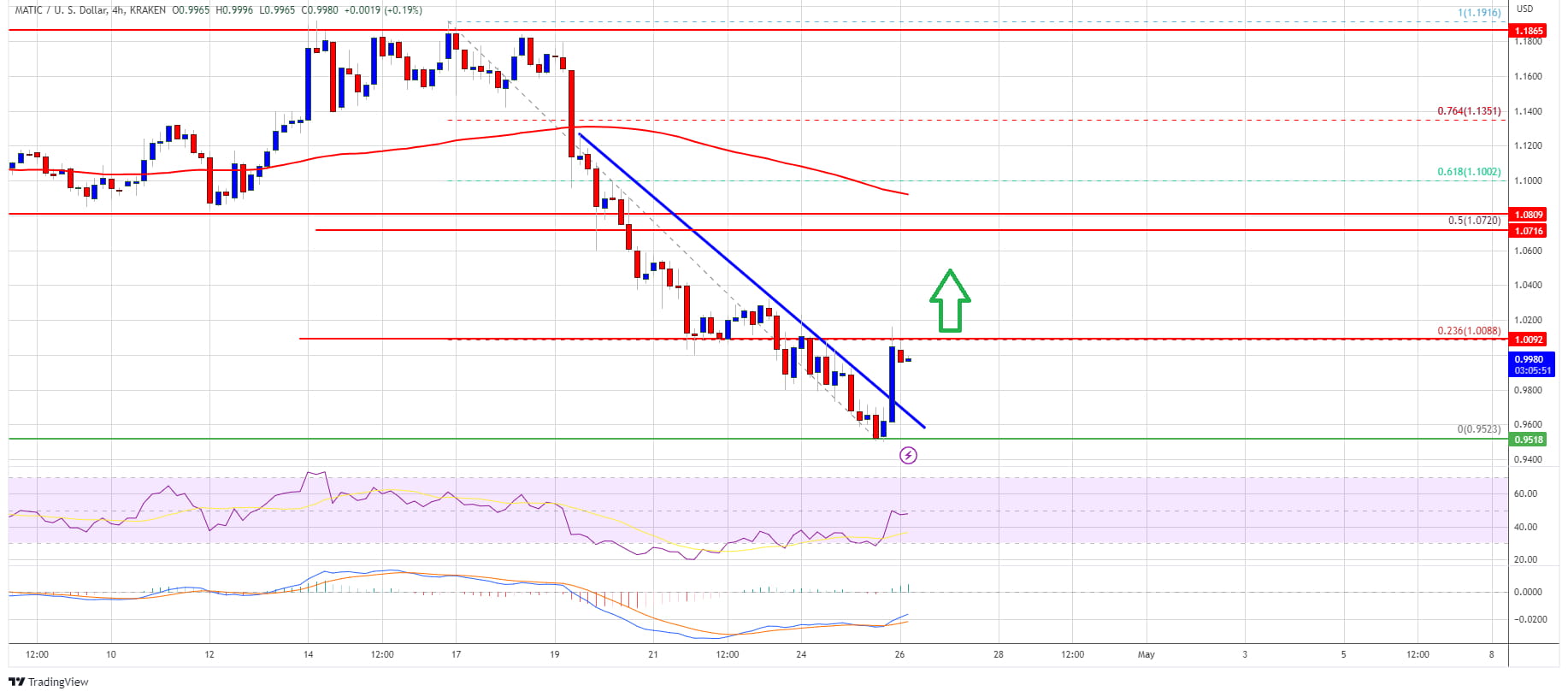 MATIC price is attempting a recovery wave above the $1.00 resistance against the US dollar.