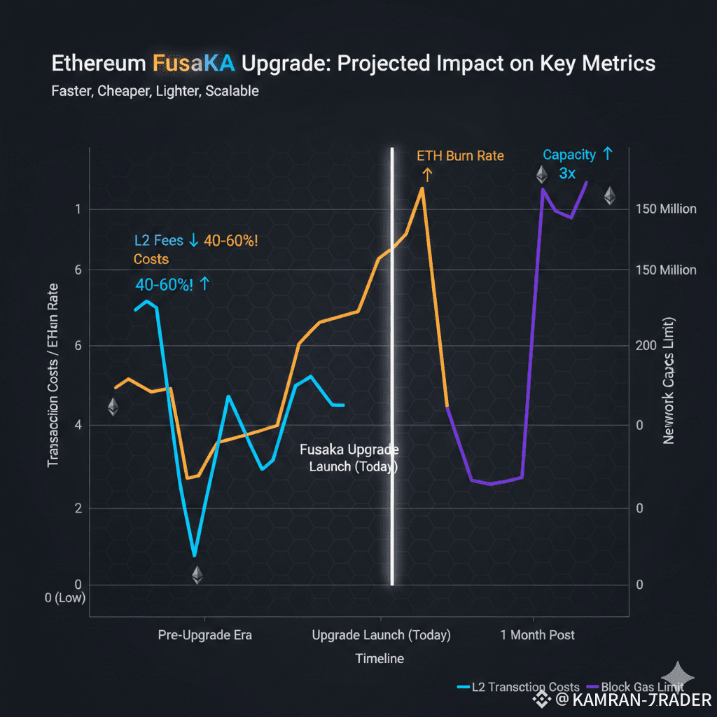 In essence, Fusaka simultaneously enhances capacity, lowers costs, speeds up data processing, and strengthens ETH's tokenomics through an increased burn rate. While the market has yet to fully grasp the significance, this upgrade positions Ethereum to be faster, cheaper, lighter, and more scalable starting today.$ETH