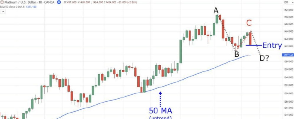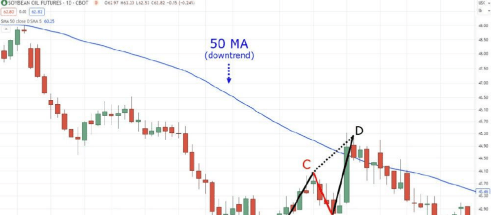 As the curtain rises on the climax of the pattern, we enter C to D, this dramatic reveal phase completes the entire ABCD pattern. However, you should remember a few things; the movement from C to D must follow the same principles I used to identify the A to B leg, as shown in the figure below.