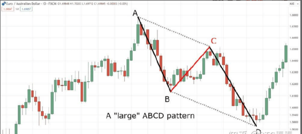 Let’s delve deeper into the ABCD pattern, not as an observer, but as a participant in this trading game. Therefore, when dealing with the ABCD pattern, you must identify the ABCD pattern with the goal of trading, rather than just analyzing. A core fact is that ABCD patterns exist in their variants, some larger, as shown in the figure below.
