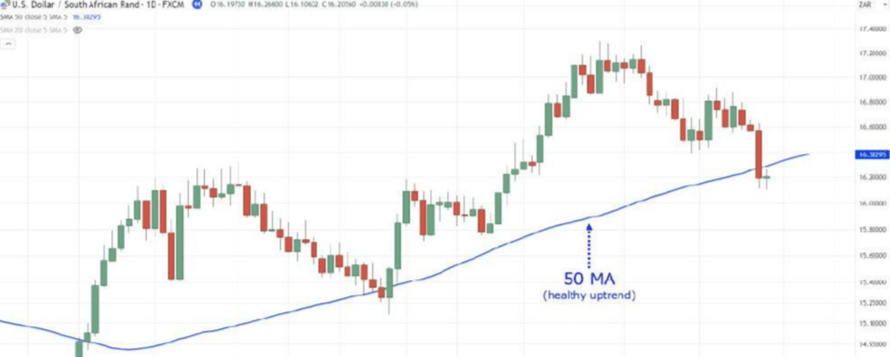 Do you remember what I shared with you earlier about healthy trends? Because this time we will use the 50-period moving average to systematically define healthy trends, as shown in the figure below.