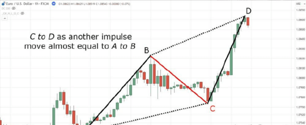 Another key part is always looking for strong symmetrical movements from A to B and C to D, rather than "choppy" movements. Imagine a dance floor; you prefer smooth movements rather than a choppy cha-cha; the ABCD pattern is no exception, so aim for those symmetrical movements from A to B and C to D, as shown in the figure below.