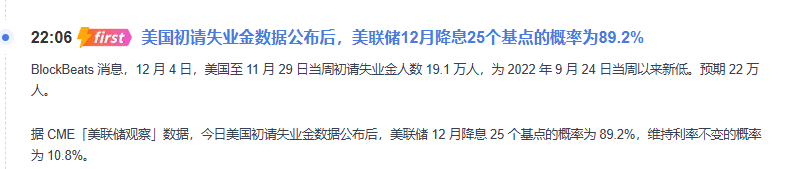 Impact on the cryptocurrency market: Negative unemployment data has reduced the probability of rate cuts in December, giving the market enough time to react to negative news in advance. SOL is already in a bearish trend technically, and with news fanning the flames again, it is estimated that it will be difficult to change the downward trend in the short term.