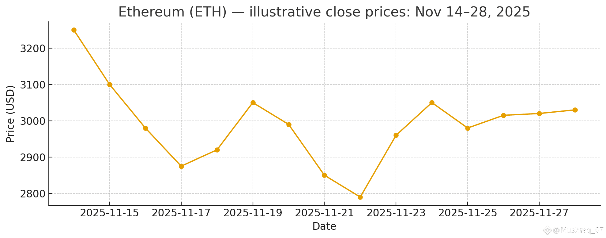 On-chain supply: Exchange reserves have fallen meaningfully (~2.0M ETH outflow over Nov 19–25), which reduces immediate selling pressure if sustained.