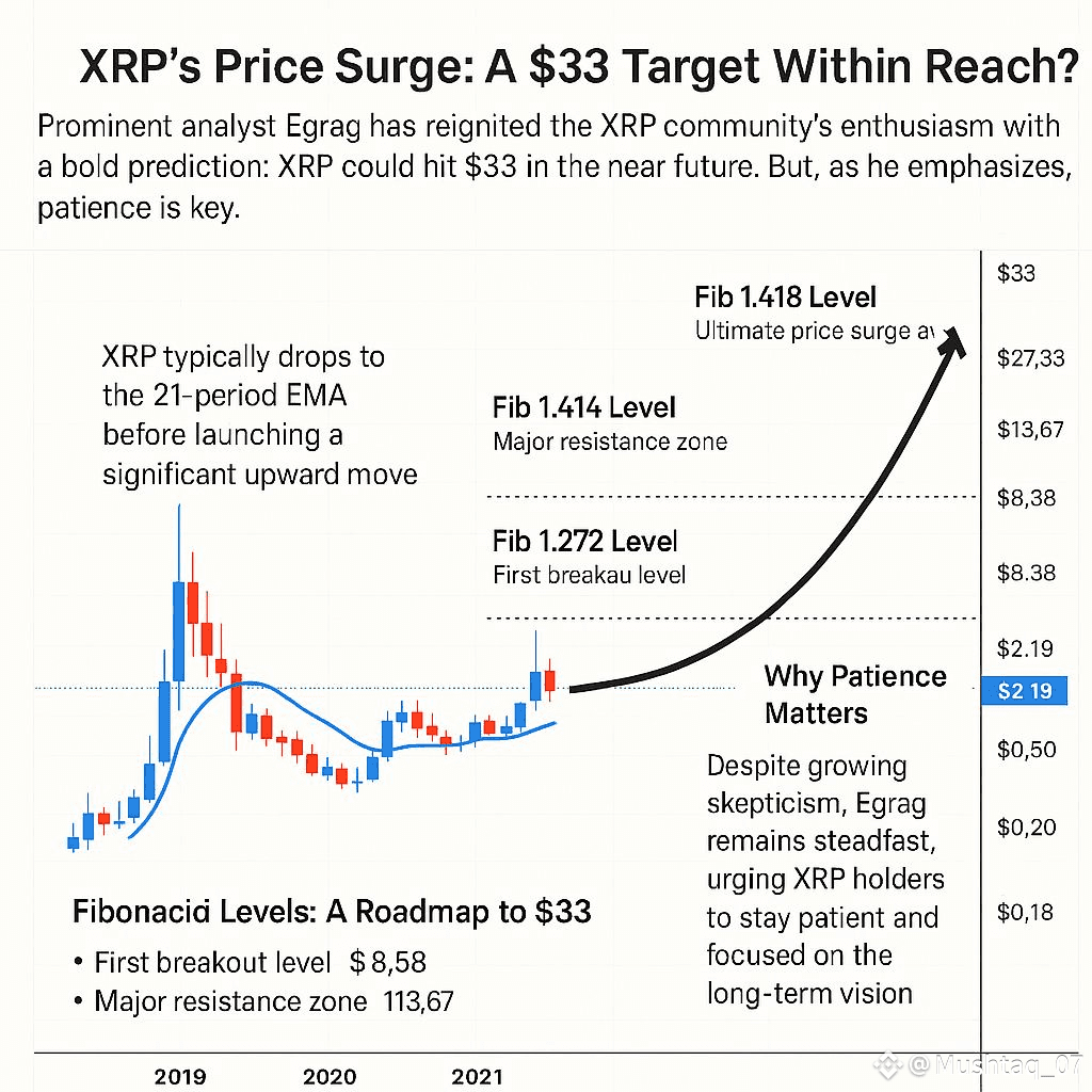 Prominent analyst Egrag has reignited the $XRP community's enthusiasm with a bold prediction: XRP could hit $33 in the near future. But, as he emphasizes, patience is key. Egrag's forecast is rooted in technical analysis and historical patterns, suggesting that XRP's current price movement mirrors its 2017 bull run ¹ ².