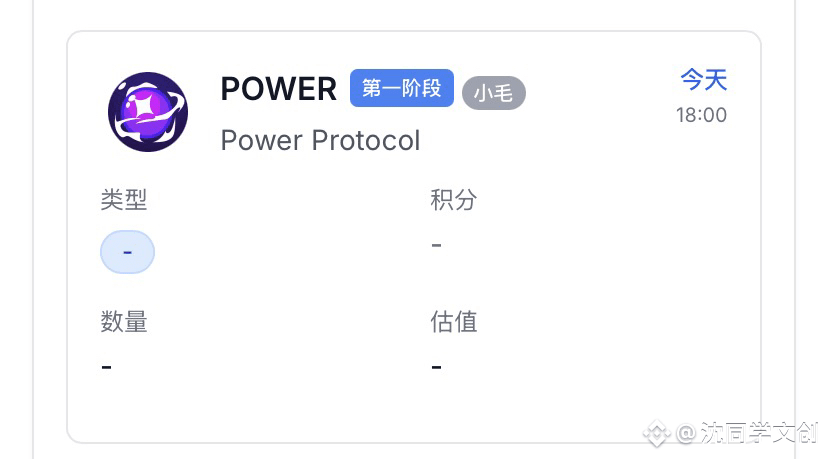 今天终于来了个正经的预热项目 Power Protocol (POWER),18:00准时发货、算是一点新盼头。会是大货吗?