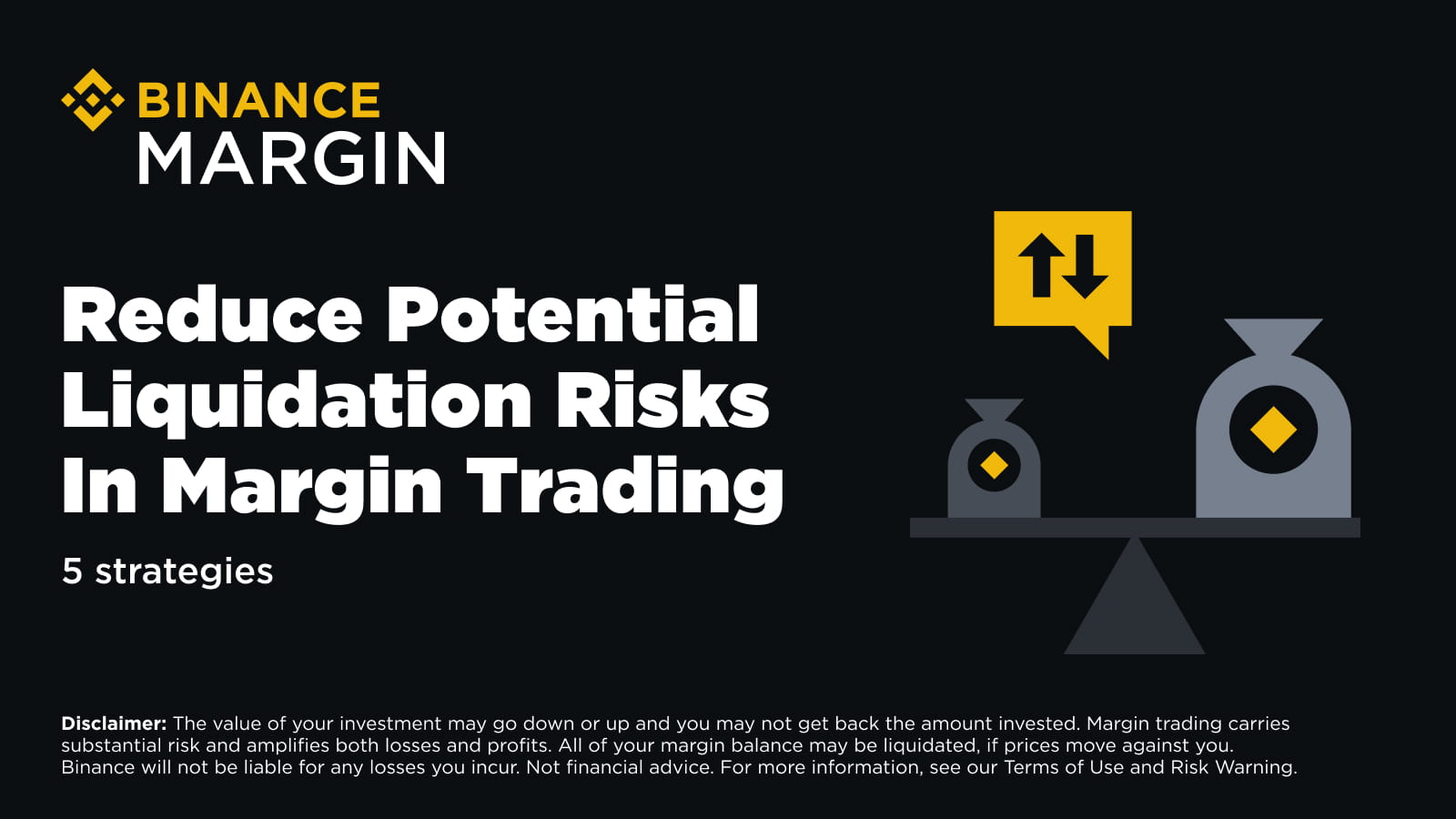 In this article, we'll explore various tools and strategies to potentially help you to reduce your liquidation risk while margin trading. Please remember, that none of the information in this article is financial advice and Binance does not consider your individual investing circumstances. Please ensure that you do your own research, understand your trading decisions and avoid investing if you do not understand the margin product, for more information please see the Margin Product Terms and our General Terms and Conditions.