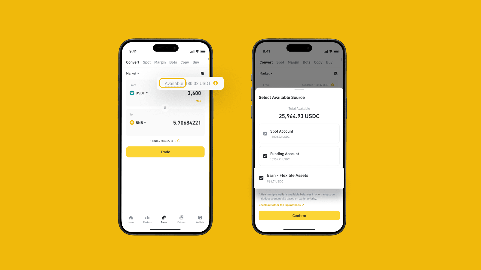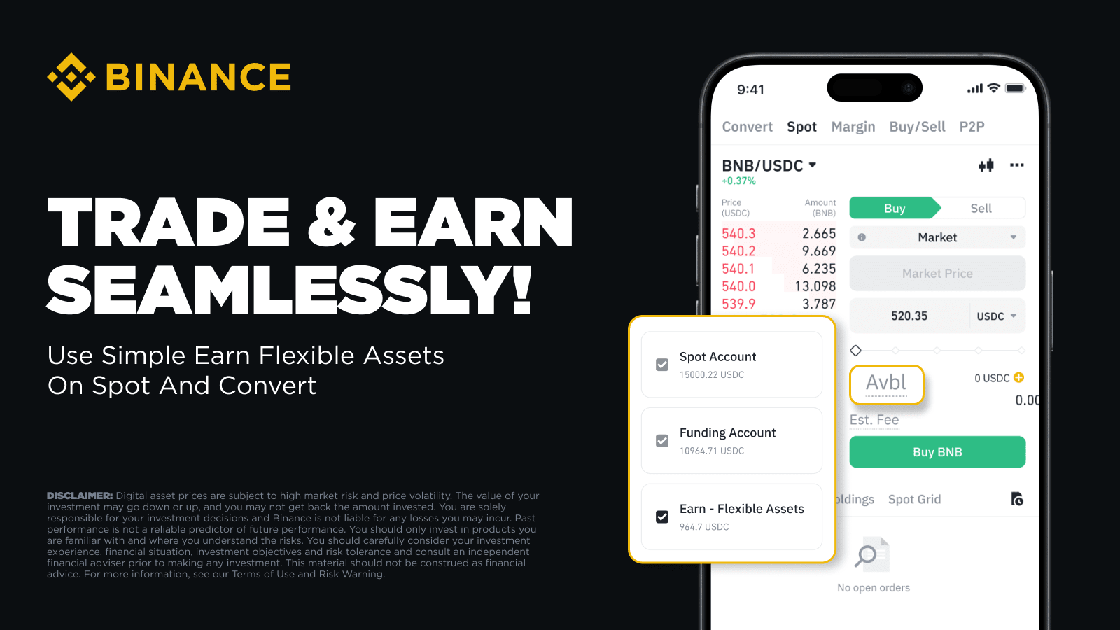 Binance is excited to announce a new feature that allows users to trade on Spot and Convert using their Earn Account balance from assets subscribed to Simple Earn Flexible Products. This provides users a more convenient and efficient way to earn APR rewards on their idle crypto assets without interrupting their trading activities.