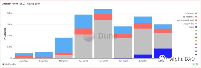 Arb and OP make around 1 million US dollars per month through this; while the more popular Base and ZK can make 2-3 million US dollars per month.
