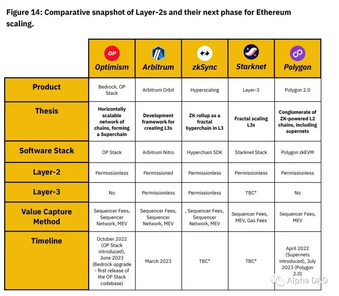 1. Optimism: Differentiates itself through its Superchain thesis. It provides a fully open source framework, but this may lead to other rollups using the OP Stack that distract from Optimism’s liquidity and users.