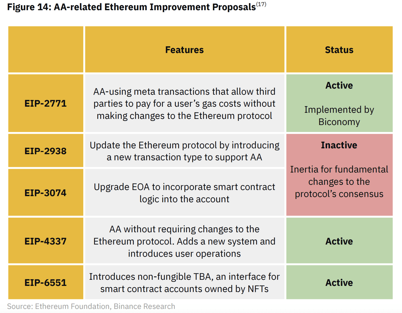 4) In fact, here’s a quick overview on the progress for AA-related Ethereum Improvement Proposals in the past, with EIP-4337 and EIP-6551 most recently implemented.