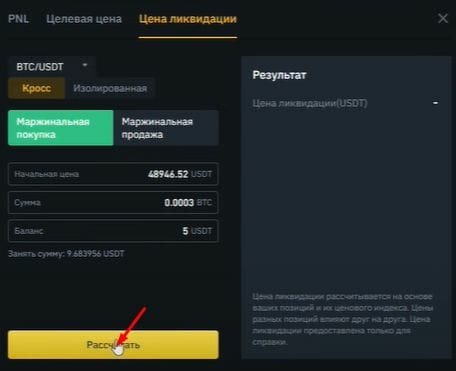 We click the “Calculate” button and in the “Result” window we will see the price of the coin, upon reaching which our position will be liquidated and we will lose our invested money. The stock exchange will never remain in the red. We will still pay a small commission on the profits. In the event of our losses, the exchange will take the money and we will still have to pay a small percentage for the use of borrowed funds.