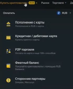 If you have not yet purchased coins, then in the “Buy Cryptocurrency” section you can top up your wallet using a bank card or P2P trading. After replenishing your account, you will be able to use your funds to purchase cryptocurrency and other activities on the exchange.