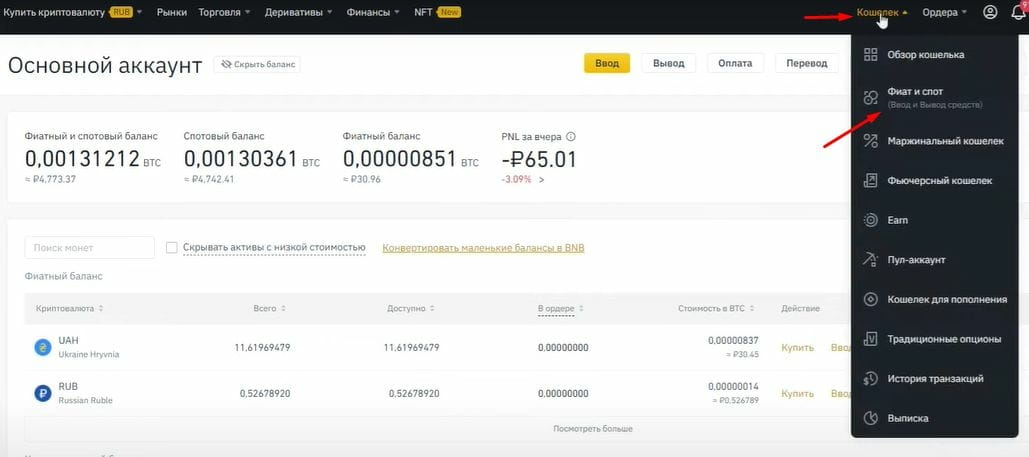 Go to Binance in the “Wallet” ⇒ “Fiat and Spot” section. Here we will see the balance of all our cryptocurrencies.