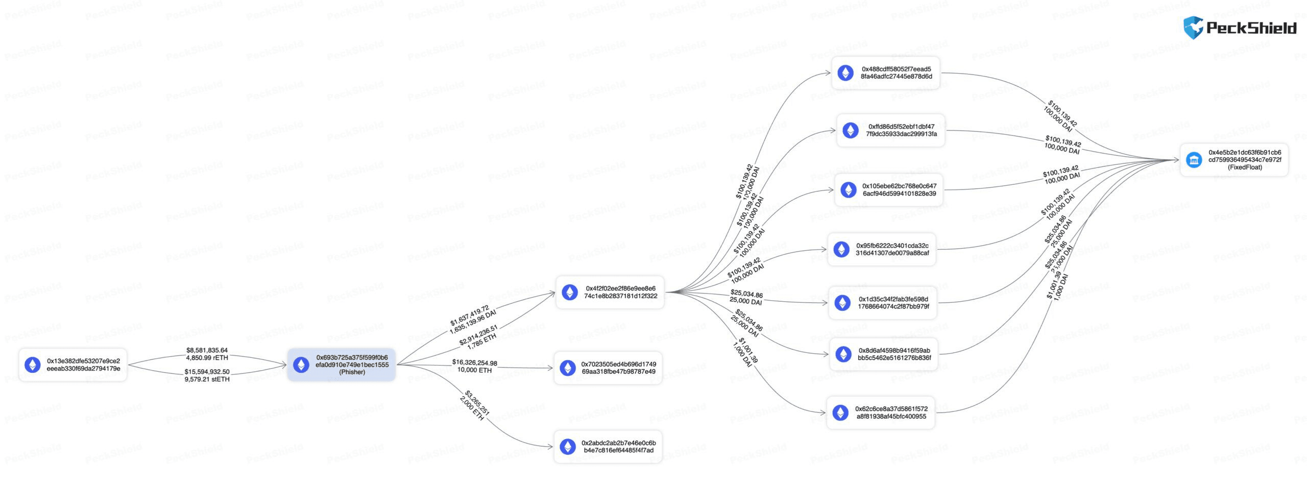 It's worth noting that one of the transactions, involving around 451,000 DAI, was sent to FixedFloat, an automated cryptocurrency exchange that utilizes the Lightning Network.