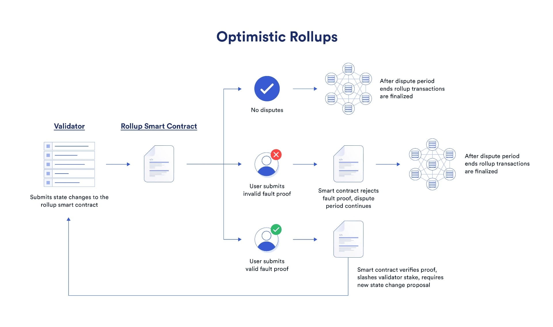 Optimistic Rollups are one of the most popular Layer 2 technologies. They function by processing transactions off-chain on Layer 2, meaning that transactions can be executed quickly and at lower fees than on main Ethereum (Layer 1). Optimistic Rollups assumes that transactions made are valid by default, so they do not require immediate confirmation at Layer 1. However, there is a waiting period at Layer 1 that allows users to submit a dispute if they doubt the validity of the transaction. This is an "optimistic" move that allows the network to remain secure. Examples of Optimistic Rollup projects include Optimism and Arbitrum.