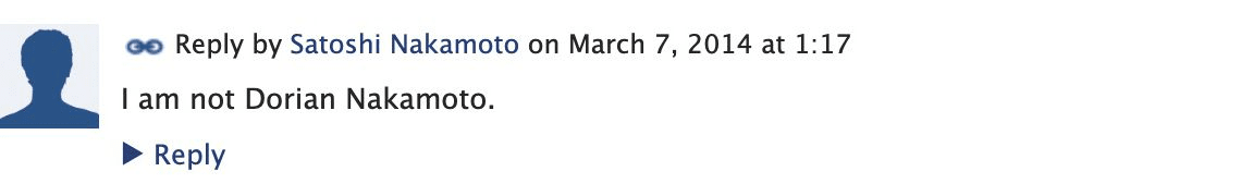 Satoshi Nakamoto himself also came forward to deny it. He sent a message to his P2P Foundation account for a long time: "I am not Dorian Nakamoto."