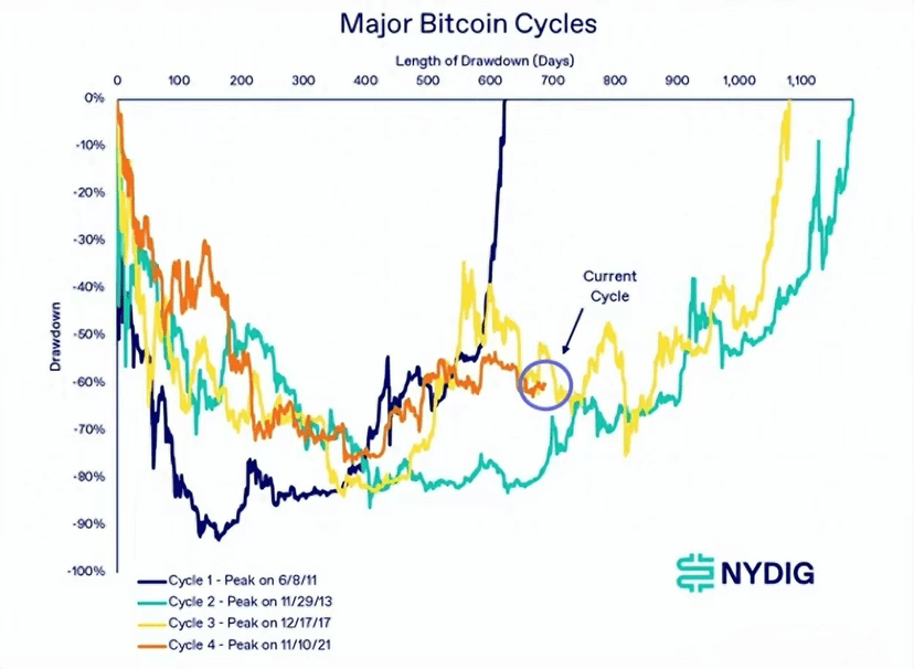 The situation in 2012 and 2020 is not entirely different. NYDIG also mentioned that the drawdown in November 2021 is similar to what was experienced in the 2018-2019 cycle.