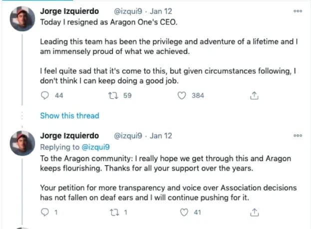 Aragon is not the first project to be questioned for its financial opacity. As early as January 2021, Jorge Izquierdo, CEO of Aragon’s parent company, announced his resignation and tweeted: “I resigned as CEO of Aragon One. I am saddened by the problems in the team. Considering that our proposal will not be implemented, I don’t think I can do better.”